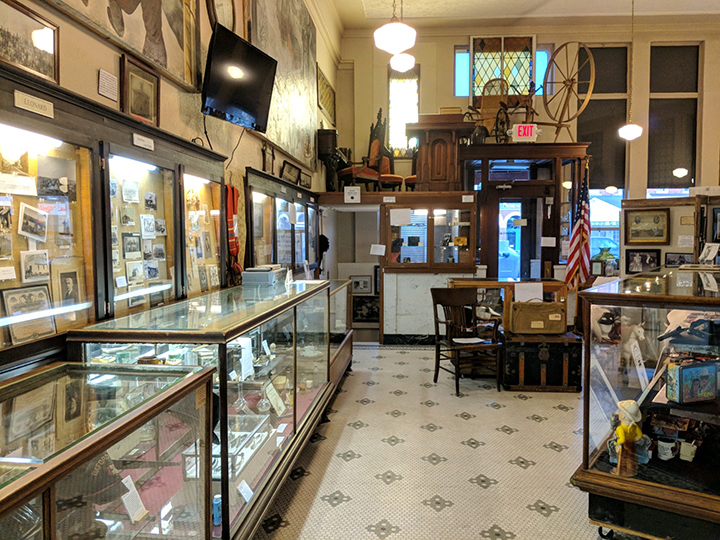 The museum is home to thousands of items ranging from antique quilts to farm tools. Displays on the main floor are a Victorian parlor, a bedroom and music section containing a square grand piano. On the lower level are tools from the old Tunstead Tin shop, a turn of the century kitchen, and numerous hand tools from local homes and farms.
